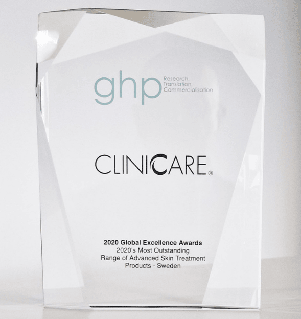 “Ausgezeichnet von Global Health & Pharma als “Most Outstanding Range of Advanced Skin Treatment Sweden” im Jahr 2020, steht Cliniccare® für die perfekte Verbindung von Wissenschaft und Natur. Unsre innovativen Hautpflegeprodukte setzen neue Maßstäbe für sichtbare Ergebnisse und höchste Kundenzufriedenheit.”