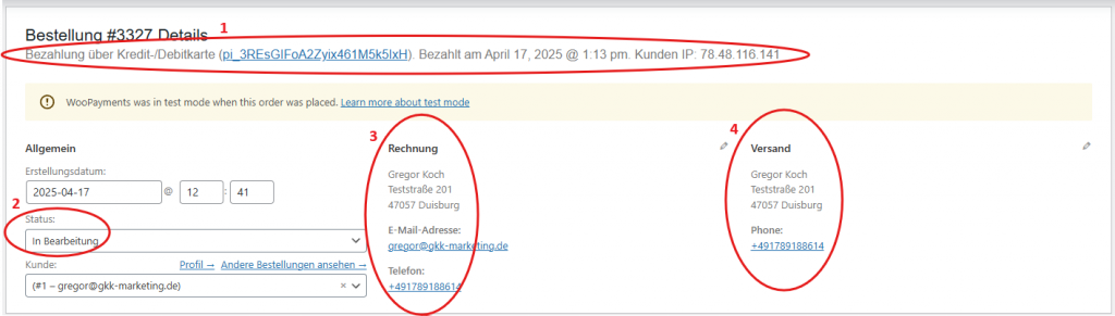 Zusätzlich wird eine neue Bestellung im WooCommerce Dashboard angezeigt (Abb. 1)