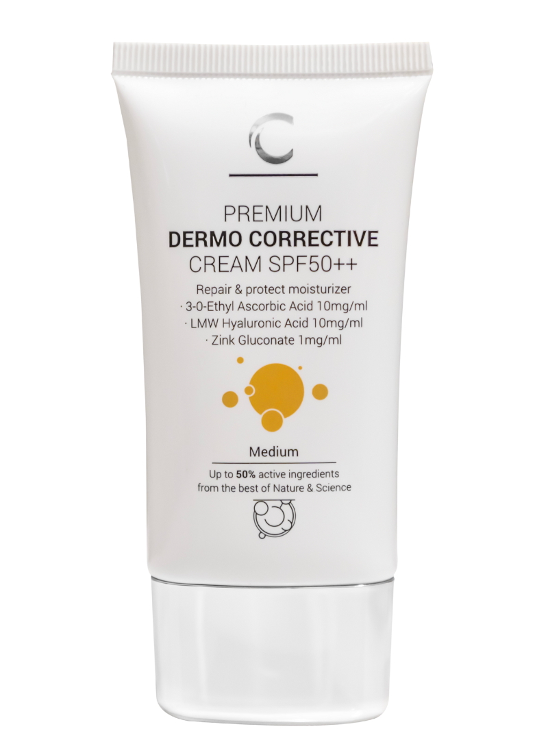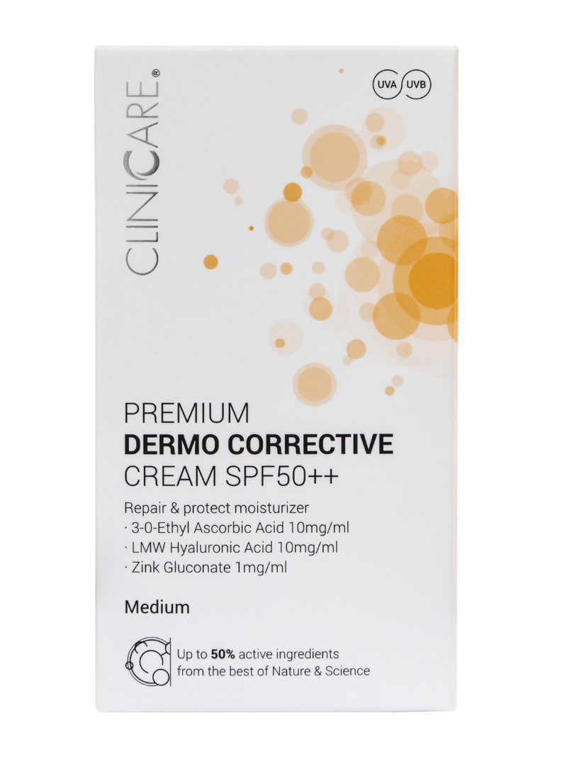 Die Dermo Corrective Cream SPF50 Medium ist ein innovativer All-in-One-Hautperfektionierer, der speziell für die empfindlichste Haut entwickelt wurde (auch in Darker erhältlich).