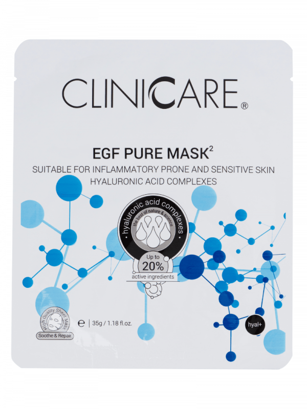 Die EGF PURE MASK² ist eine beruhigende Gesichtsmaske, die speziell entwickelt wurde, um intensiv Linderung, Hautverjüngung und Feuchtigkeit für gereizte und problematische Haut zu bieten. Die Maske liefert beruhigende Wirkstoffe direkt in die Haut.