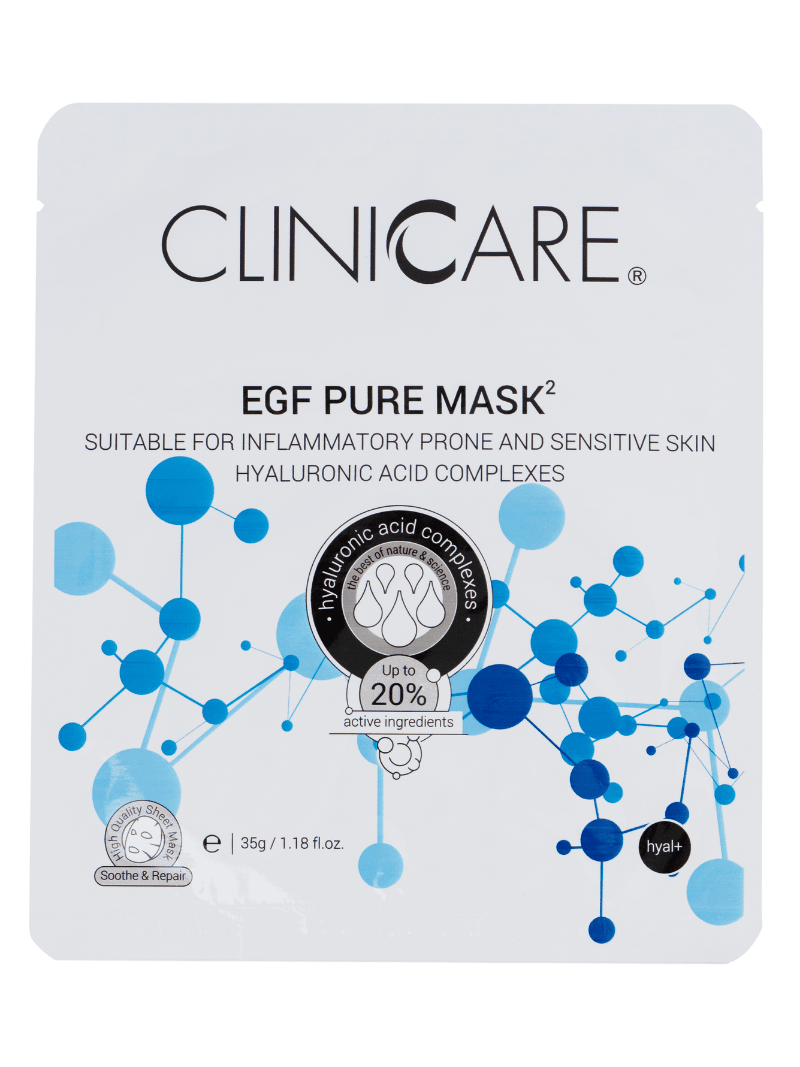 Diese Wirkstoffkombination bietet eine umfassende Lösung für entzündete, gereizte und problematische Haut. Die EGF Pure Mask² versorgt die Haut mit Feuchtigkeit, beruhigt Entzündungen, reduziert Rötungen und unterstützt die Regeneration der Hautzellen. Dank ihrer innovativen Formel ist die Maske auch für empfindliche und gereizte Haut geeignet.